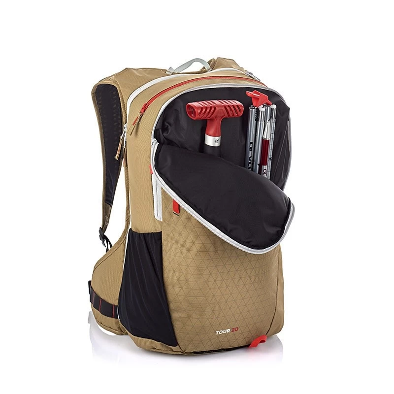 The call of the wild. Big enough to carry your gear on most day trips in the mountains, the TOUR20 is a lightweight ergonomic backpack that focuses on the essentials. Arva based the design of this ski touring pack on three main components: comfort, functionality, and respect for the environment. Comfort: The shape of the shoulder straps and soft, wrap-around waist belt are designed for a perfect fit.